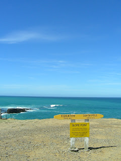 It was windy that night, which kept the sandflies mostly at bay. Even more wind in the morning meant we barely got eaten at all as we packed up to leave the fiords. We stopped again at Te Anau for gas and a snack at the friendly Sandfly Cafe. After that we continued along the Southern Scenic Route and picked up a couple sausages in Tuatapere (the sausage capital of NZ, apparently) and stopped for a nice ocean/mountain view at McCracken's Rest along the coast.